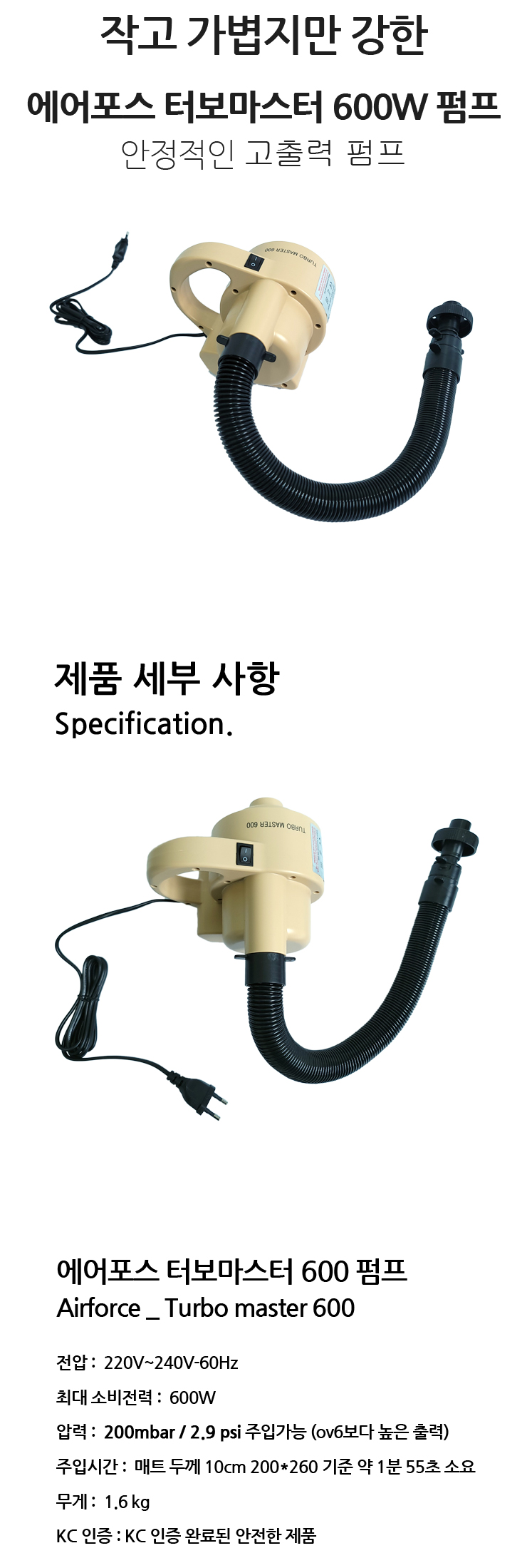 터보마스터 전동펌프만으로도 에어매트를 어느정도 단단하게 쓸 수 있어